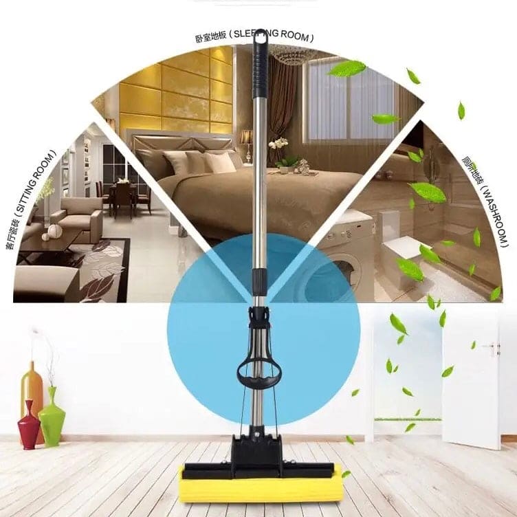 Foamic Sponge Squeezy Mop, Double Roller Sponge Foam Mop, Telescopic Folding Type Mop, Floor Cleaning Squeeze Mop, Telescopic Handle Squeegee Absorber Sponge, Home Floor Kitchen Living Room Bathroom Cleaning Tools